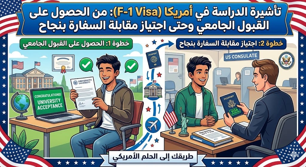 تأشيرة الدراسة في أمريكا (F-1 Visa): من الحصول على القبول الجامعي وحتى اجتياز مقابلة السفارة بنجاح