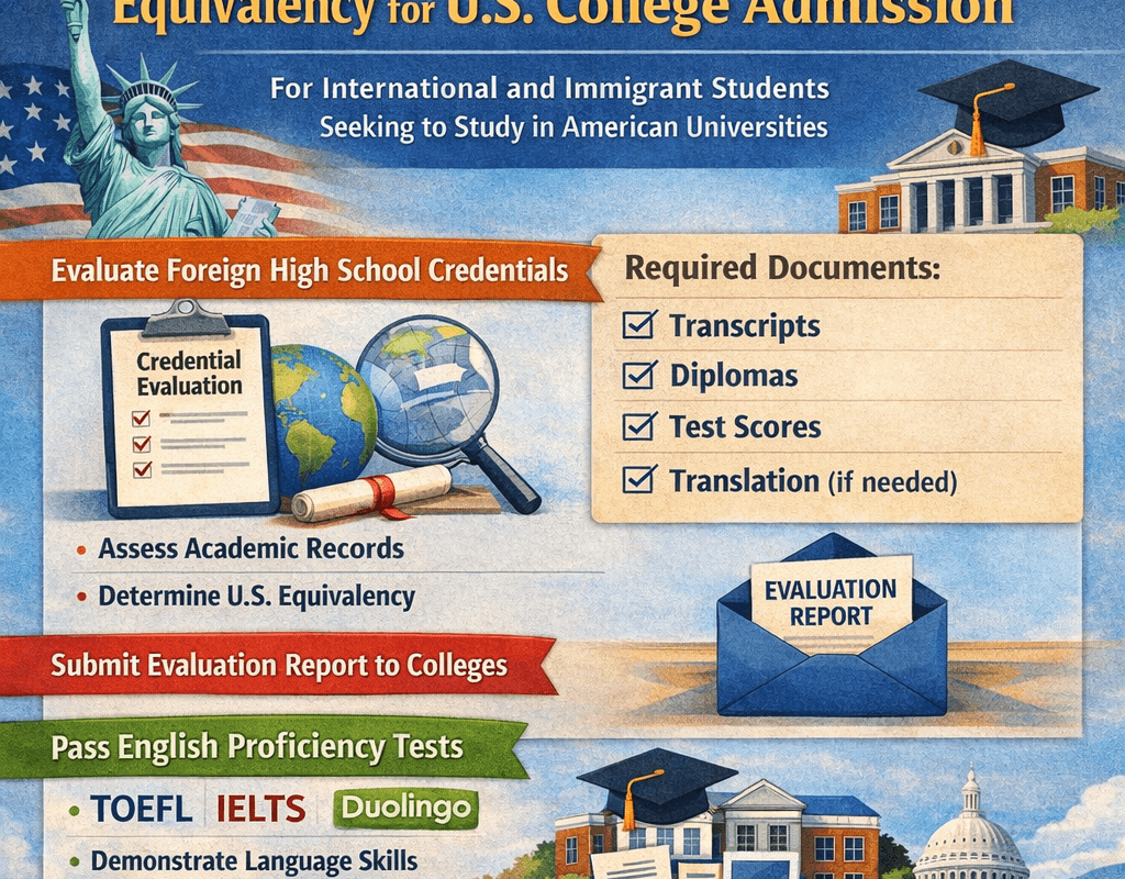 وهذا التقييم لا يعني أن أمريكا ستمنحك شهادة ثانوية أمريكية جديدة، بل يعني أن جهة مختصة أو الجامعة نفسها ستراجع وثائقك لتقرر ما إذا كانت دراستك الثانوية الأجنبية تكفي للقبول في مرحلة التعليم الجامعي، وما هي المستندات المكملة التي تحتاجها.