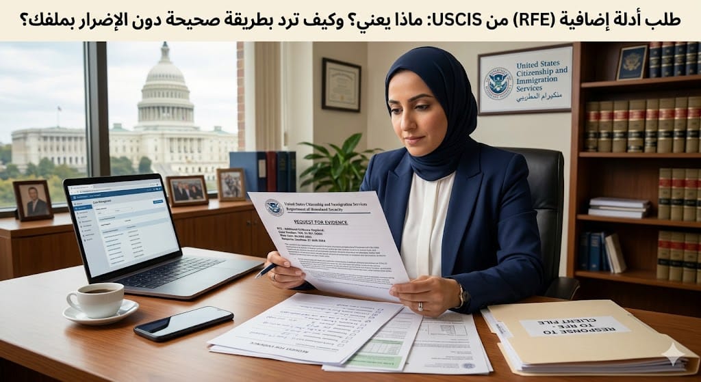 إذا وصلتك رسالة RFE من USCIS فهذه ليست “رفضًا نهائيًا”، بل طلب أدلة إضافية لتوضيح/إثبات الأهلية. في هذا الدليل التوعوي ستفهم ماذا يعني RFE، من يشمله، وكيف تجهز ردًا كاملاً ضمن الوقت المحدد لتفادي مخاطر مثل “الرفض بسبب عدم الرد” أو اعتبار الرد غير كافٍ.